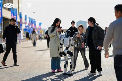 У входа в зал умный робот приветствовал гостей, взмахнув механической рукой и тепло объявив: «Добро пожаловать на празднование 20-летия Cofoe Medical!»